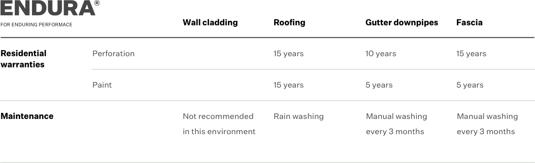 Please note: This is a guide only. Each warranty will be assessed on a case by case basis. Please seek further advice on the selection of the appropriate product to suit your location from your local COLORSTEEL® supplier or contact COLORSTEEL®.